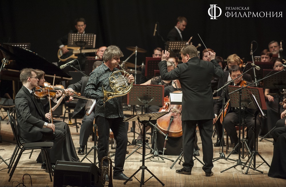 13 апреля на сцене концертного зала филармонии в сопровождении Рязанского губернаторского симфонического оркестра под управлением маэстро Сергея Оселкова выступили два ярких исполнителя современной музыкальной сцены - Аркадий Шилклопер (валторна) и Евгений Финкельштейн (гитара).