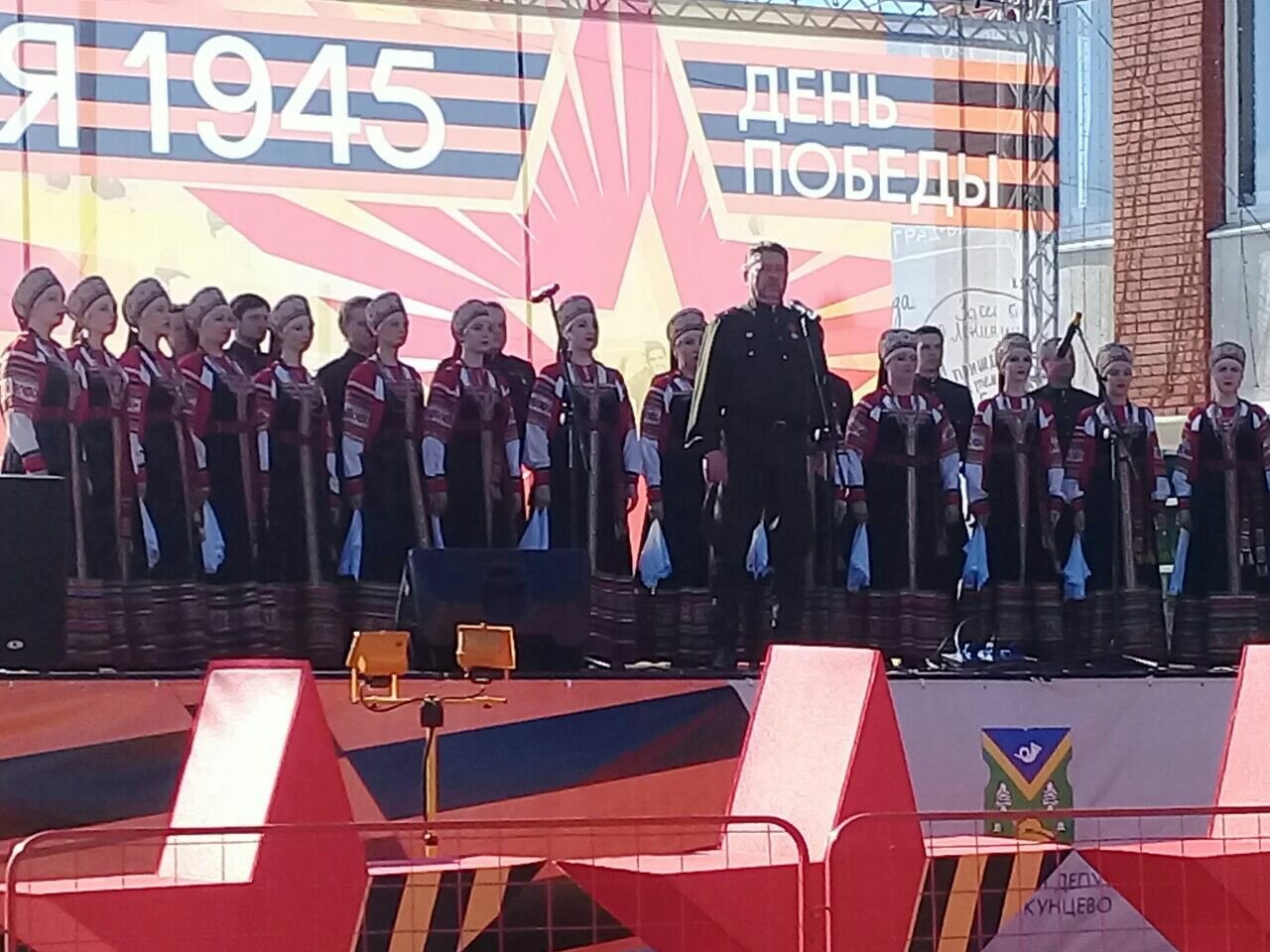 Праздничный концерт, посвященный 73-й годовщине Победы в Великой Отечественной войне 1941-1945гг., состоялся сегодня на площадке культурного центра «Рублево» в Москве. Наряду с известными артистами участниками вечера стал также прославленный коллектив Рязанской филармонии - Государственный академический Рязанский русский народный хор им. Е. Попова. Хор исполнил любимые всеми композиции: «День Победы», «Катюша», «Синий платочек», «Победный май» и другие.