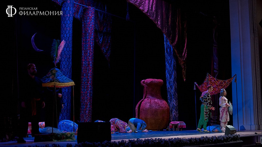 В основу мюзикла «Волшебная лампа Аладдина», поставленной художественным руководителем театра Жанной Тертерян, лег рассказ о гончаре Аладдине. Молодой человек и его возлюбленная царевна Будур предстали перед рязанцами в необычном свете. Теплые отношения возлюбленных и неистовая борьба добра и зла развернулись в стенах филармонии. Джин стал невероятно жизнерадостным, а злодей Джафар превратился в обыкновенного министра без портфеля. События на сцене разворачиваются стремительно – герои красивы и молоды, они веселятся сами, радуют зрителей и прекрасно поют.Мюзикл наполнен восточными ритмами, пряной и красочной атмосферой, декорациями, выполненными из натуральных тканей, роскошными костюмами, юмором и современным прочтением – все это на время помогло отвлечься от повседневных забот и окунуться в чарующий мир Востока.
