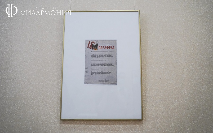 Перед началом концерта в левом фойе филармонии открылась, посвященная творческой истории квартета русских инструментов «Парафраз». В экспозиции были представлены фото из личных архивов музыкантов, Рязанской областной универсальной научной библиотеки им. Горького и архива заслуженного работника культуры России Тамары Николаевны Цукановой. Особое место заняли стенды, посвященные участникам первых составов ансамбля: заслуженному деятелю искусств России Александру Ермакову (баян), Юрию Кузнецову (балалайка бас) и заслуженному артисту России Евгению Чиркову (балалайка бас).