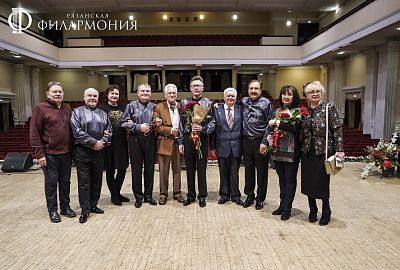 Именниники в этот вечер не могли обойтись без творческой поддержки своих друзей и коллег: заслуженной артистки России Ларисы Голиковой и солистки Рязанской филармонии Елены Братковой. Новым тандемом стало выступление квартета с известным рязанским певцом Алексеем Свиридовым. Свои музыкальные поздравления представили молодые коллективы филармонии – квартет кларнетистов РГСО и трио баянистов «Ostinato».В юмористической манере «сюрприз» представили артисты Рязанского областного театра кукол Екатерина Филиппова и Олег Царев, переиграв на свой манер известный номер Мэрилин Монро из кинофильма «В джазе только девушки». Финальным праздничным аккордом концерта стало «величание» от Рязанского русского народного хора им. Е. Попова.