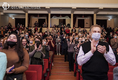 Лучший подарок для любого человека – это занятие любимым делом. Поэтому музыканты, полные радости и вдохновения, делились этими чувствами со слушателями, которых было немало: всe билеты из разрешенных 25 процентов заполняемости зала были раскуплены. Среди публики – и давние поклонники творчества «Парафраза», и юные слушатели.