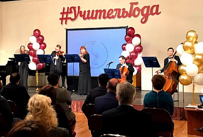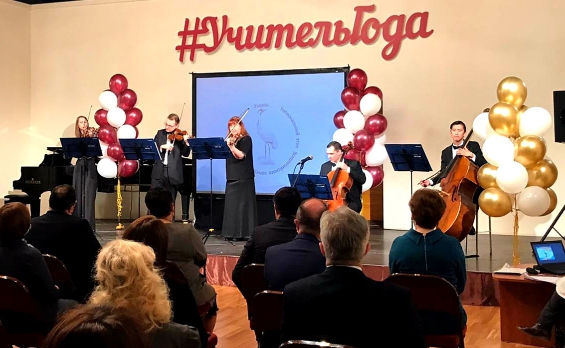 29 апреля в зале камерной музыки Рязанской филармонии состоялась торжественная церемония закрытия регионального этапа Всероссийского конкурса «Учитель года России-2021». На церемонии были вручены награды лауреатам коннкурса. Приветствовали победителей дипломат всероссийского конкурса Елена Браткова (сопрано), Елена Балашова (фортепиано) и камерный ансамбль «Солисты Рязани».