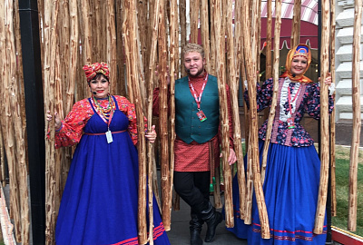 В рамках работы выставочного павильона Рязанской области, который курировало Министерство культуры и туризма, артисты Рязанского хора показали интерактивную программу «Рязанские прибаутки».