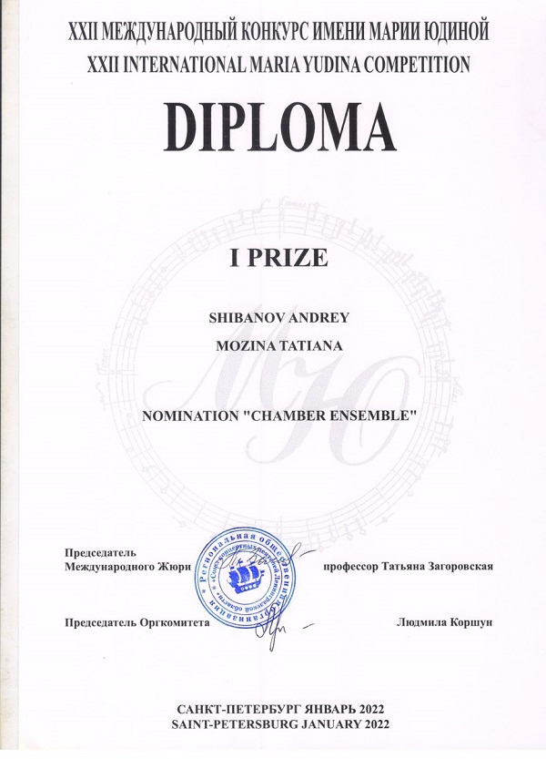 Аккомпаниатор-концертмейстер музыкально-просветительского отдела Рязанской филармонии Татьяна Мозина стала обладателем диплома лауреата I степени XXII Международного конкурса молодых пианистов, фортепианных дуэтов и камерных ансамблей имени Марии Юдиной, который проходил с 26 по 29 января в Санкт-Петербурге.