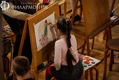 Обучаясь искусству слушать живую музыку и узнавая много нового, наши зрители по традиции перенесли свои впечатления на бумагу. Сотворить собственное произведение искусства ребятам помогали студенты Рязанского художественного училища им. Г.К. Вагнера Дарья Школина и Анастасия Минаева.