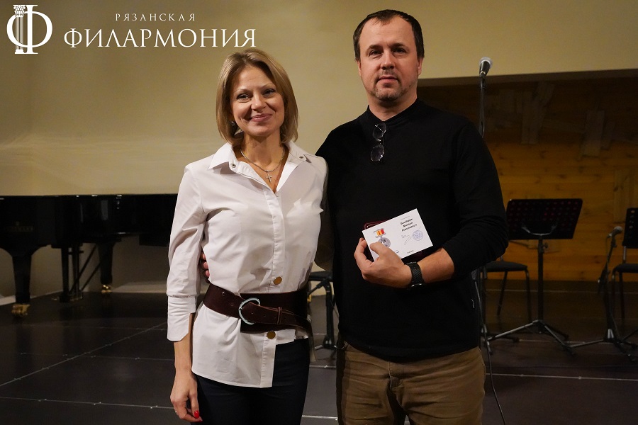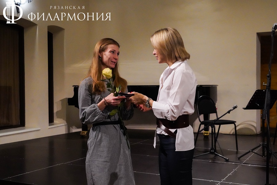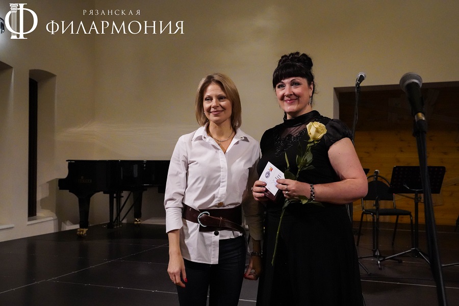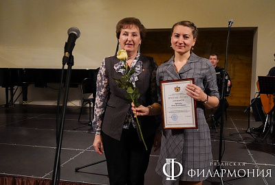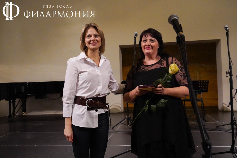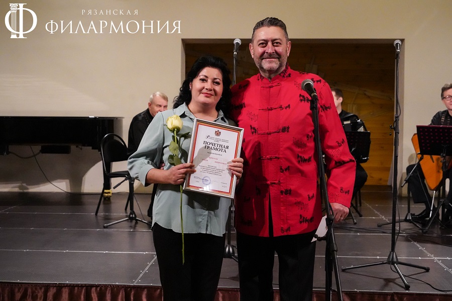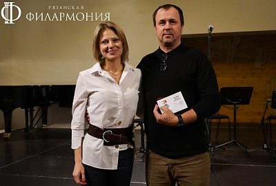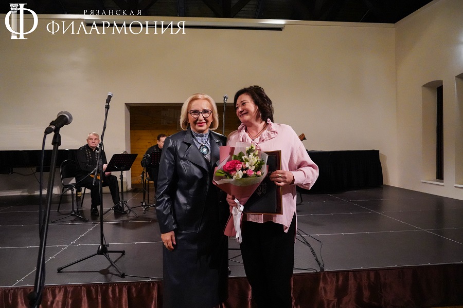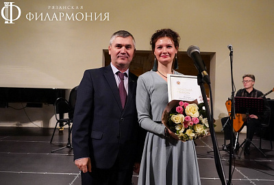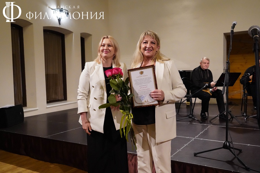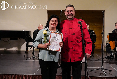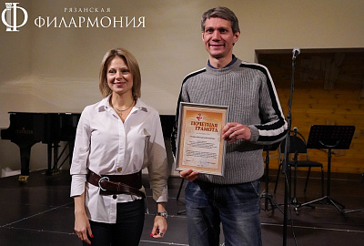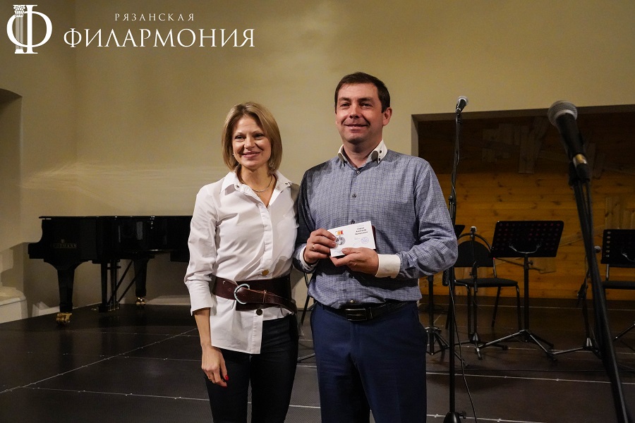 Директор Рязанской областной филармонии Елена Буняшина выразила благодарность за подготовку масштабного концерта, открытость новым проектам, пожелала осуществления самых смелых творческих замыслов и вручила каждому артисту выпущенную к юбилею марку хора.