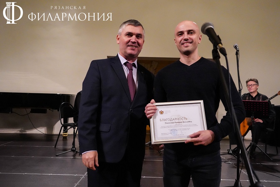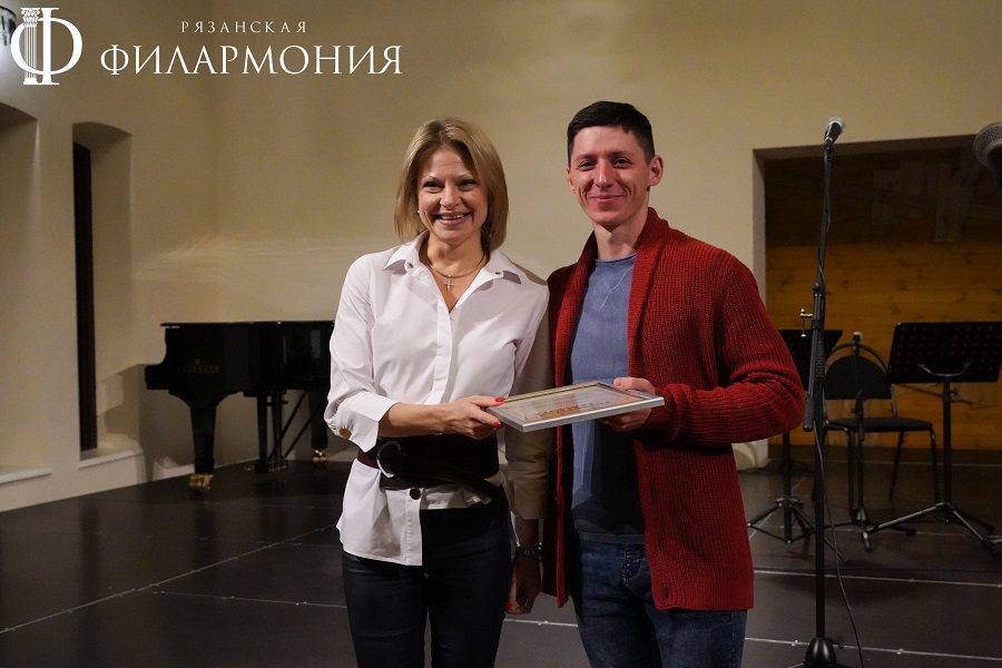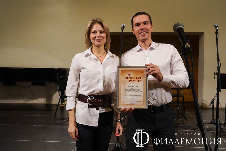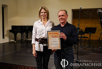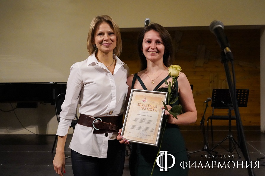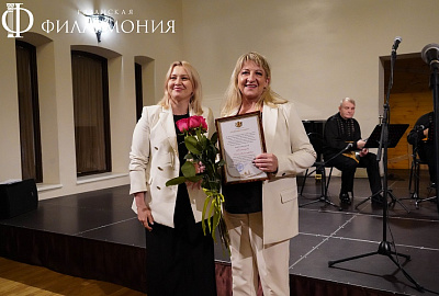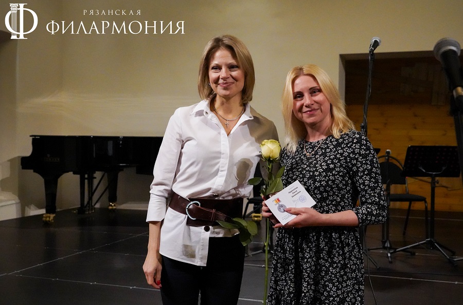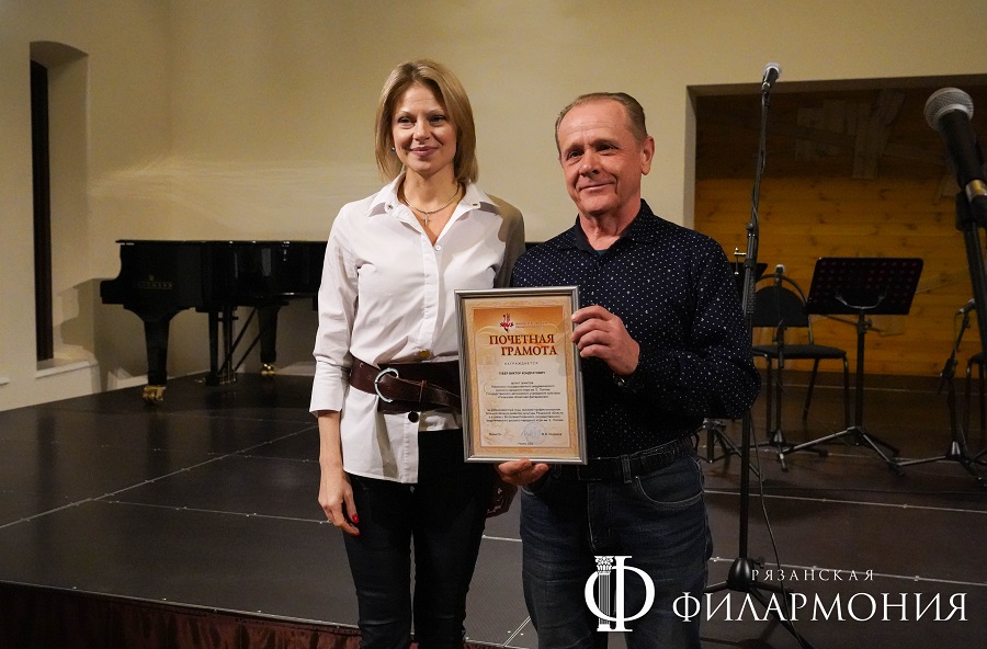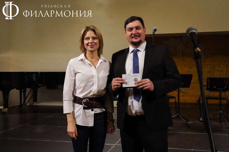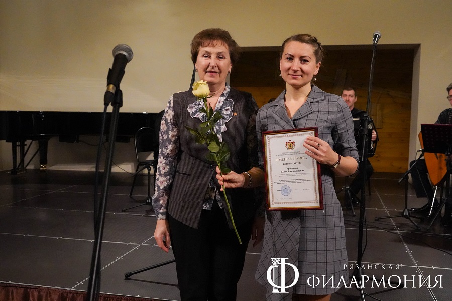 Директор Рязанской областной филармонии Елена Буняшина выразила благодарность за подготовку масштабного концерта, открытость новым проектам, пожелала осуществления самых смелых творческих замыслов и вручила каждому артисту выпущенную к юбилею марку хора.
