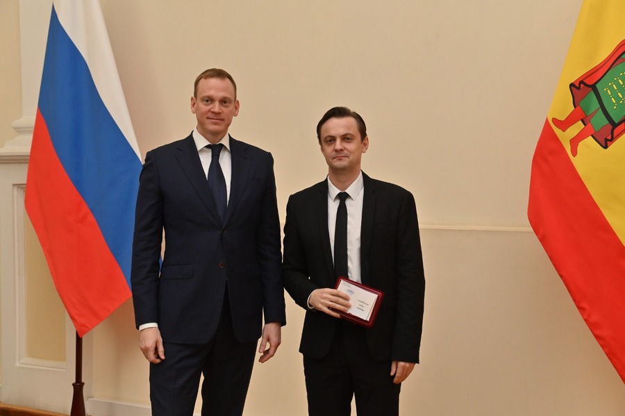 31 октября в Правительстве Рязанской области состоялась церемония награждения. Среди отмеченных – артисты Рязанской областной филармонии. Артистка балета Рязанского государственного академического русского народного хора им. Е. Попова Анжелика Ивкина награждена почетным знаком «За заслуги перед Рязанской областью». Артистам Рязанского губернаторского симфонического оркестра Павлу Воробьеву и Сергею Мунинкину и артистам Рязанского государственного академического русского народного хора им. Е. Попова Владимиру Ивашкину и Татьяне Мишуровой присвоено звание «Почетный работник культуры и искусства Рязанской области». Награды вручил Губернатор Рязанской области Павел Малков.