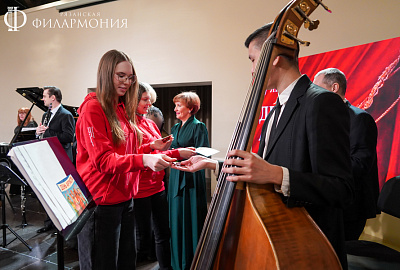 Поздравить артистов филармонии с профессиональным праздником сегодня пришли активисты Рязанского отделения «Движения Первых». Ребята очень тепло и душевно поблагодарили музыкантов ансамбля «Солисты Рязани», солисток Алину Сафронову и Елену Браткову и ведущую Елену Пронюшкину за неоценимый вклад в развитие отечественной культуры. К поздравлениям и благодарностям присоединились маленькие зрители «Музыкальной акварели» и их родители.