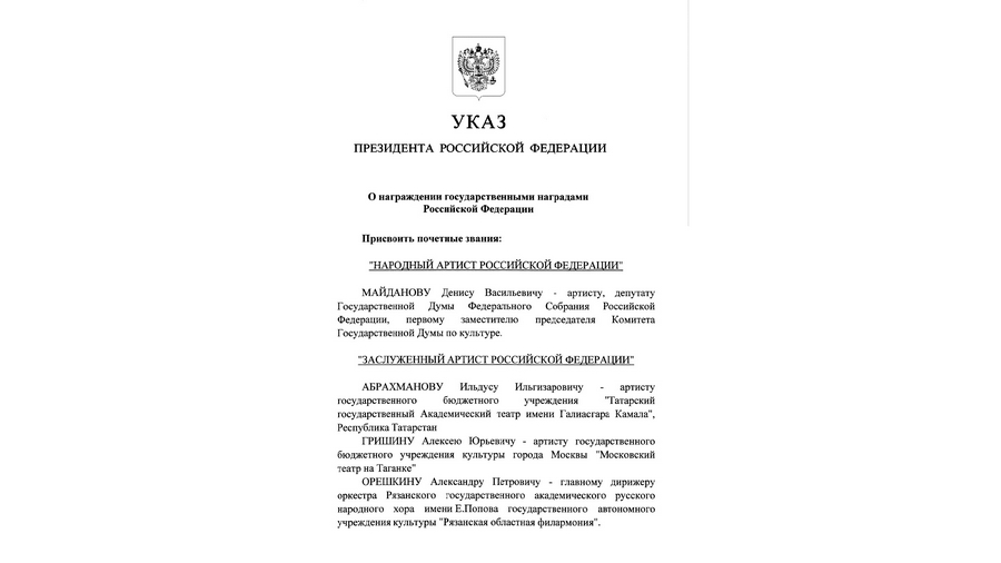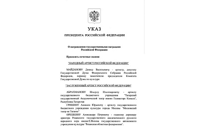 Эта высокая государственная награда — закономерный итог Вашей яркой творческой жизни, преданности искусству, многолетнего самоотверженного труда и огромного личного вклада в развитие отечественной музыкальной культуры.