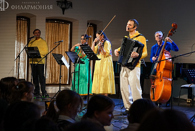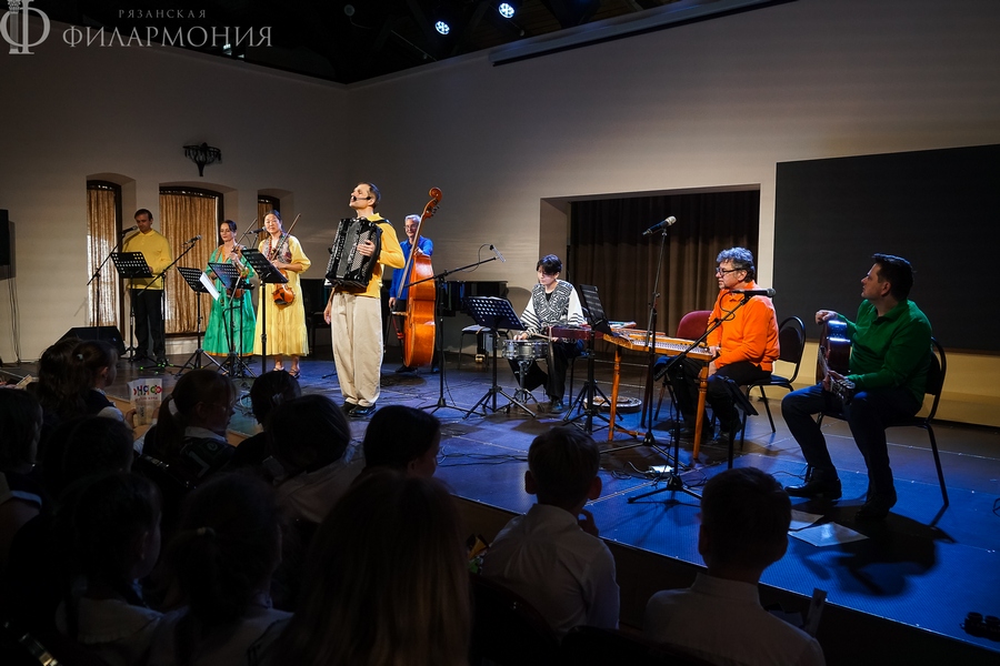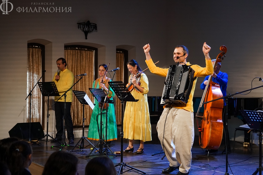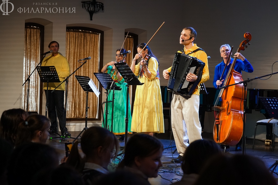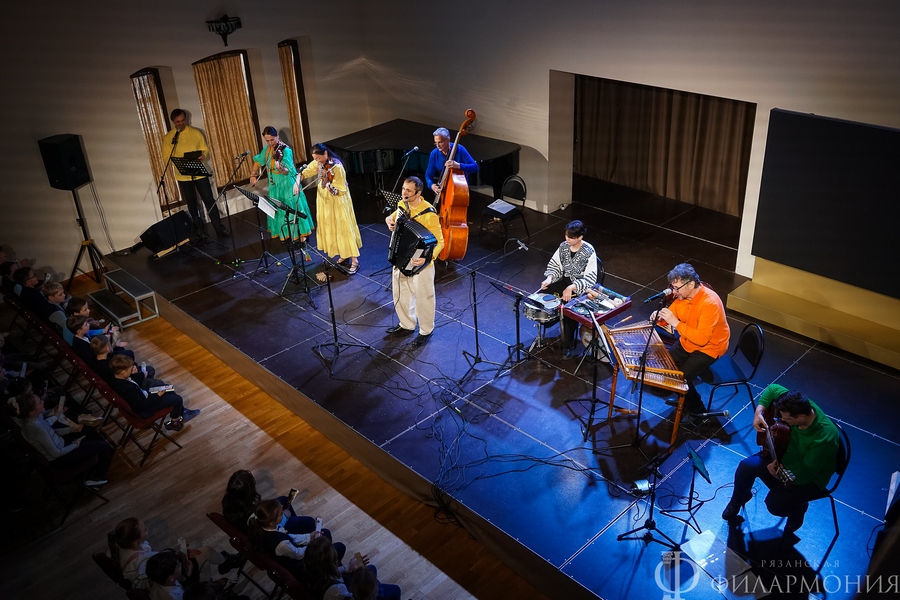 17 апреля в Зале камерной музыки знаменитый фолк-классик ансамбль «Фыняф» представил увлекательный иммерсивный концерт-сказку «Приключения домовенка Ерошки». Воспитанники школы № 7 «Русская классическая школа» г. Рязани вместе с музыкантами отправились в путешествие по музыкальным артефактам народов России – от русских до финно-угорских и северных. Этот концерт стал источником народной мудрости, где добро побеждает зло, а язык музыкального фольклора понятен каждому.